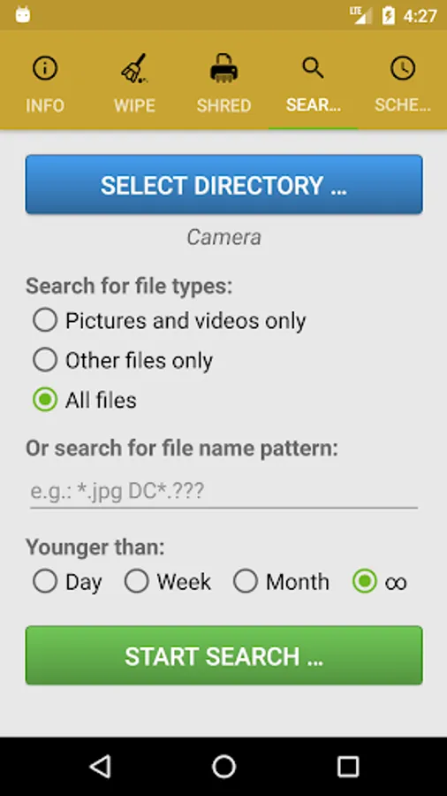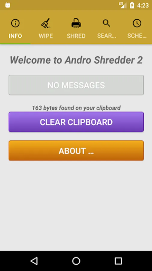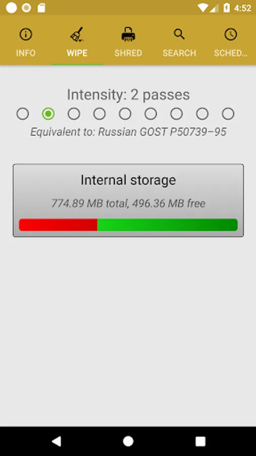 AndroShredder allows to permanently destroy file contents and wipe previously used storage space, so that secret data can't be restored even by advanced recovery tools.