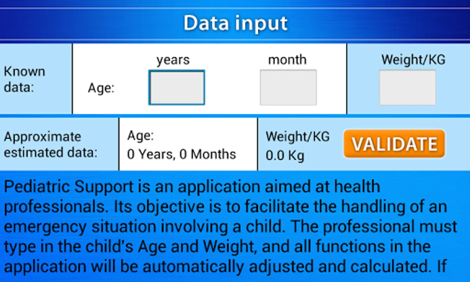 Pediatric Support it is an application aimed at health professionals. Its objective is to facilitate the handling of an emergency situation involving a child