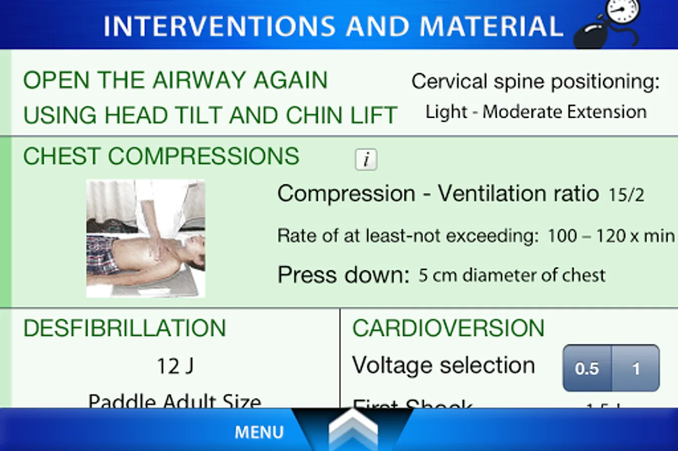 This application is based on the medical practice guidelines recommended by medical literature; the 2015 European Resuscitation Council (ERC) and American Heart Association (AHA) Guidelines for Cardiopulmonary Resuscitation.
