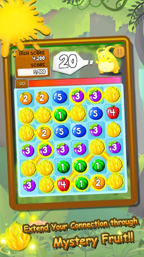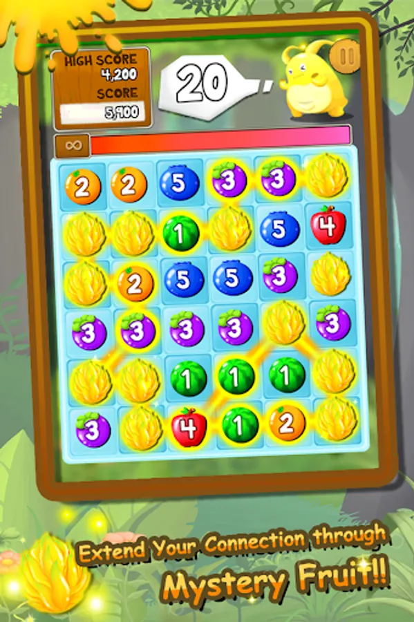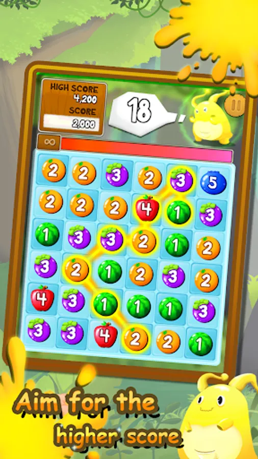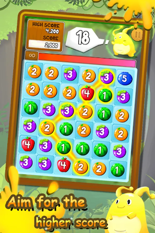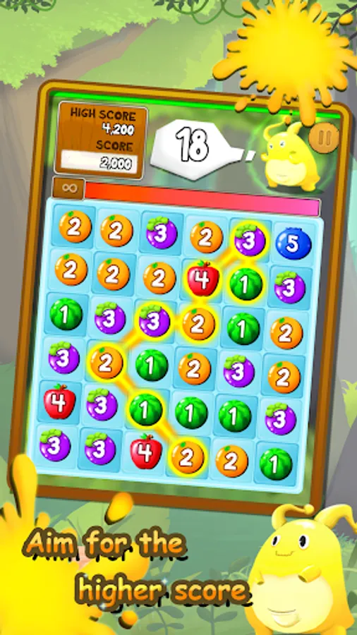 Add the numbers by dragging the fruits together into the correct sum on the top. If you are a slow and careful player, you can try to make longer connections which will give bonuses to the score. If you are quick and responsive, you can try to make combos for more bonuses. If you are smart and good at both, the combos and the long connections stack up. See how far you can go.