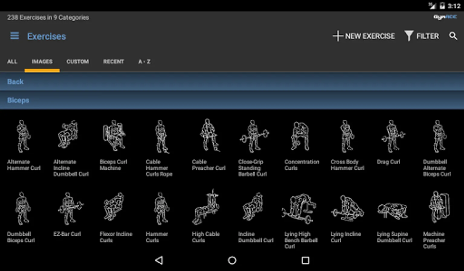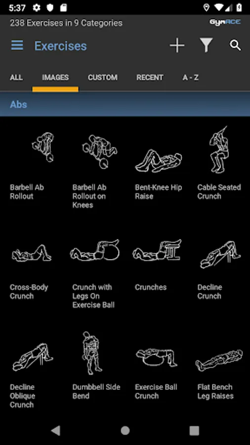 • You can do each exercise one after another, but you can also skip exercises, do them in a different order, or do extra ones. You can also do as many sets as you want, or as the situation in the gym requires. GymACE does not restrict you in any way.