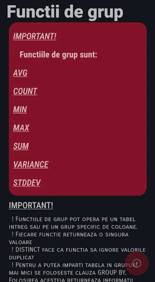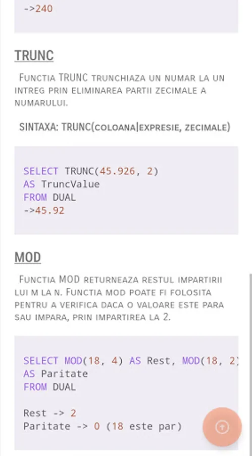 Each chapter addresses a type of function, providing definitions, explanations and examples. The examples represent sequences of code in the SQL language that have the role of facilitating the learning process.