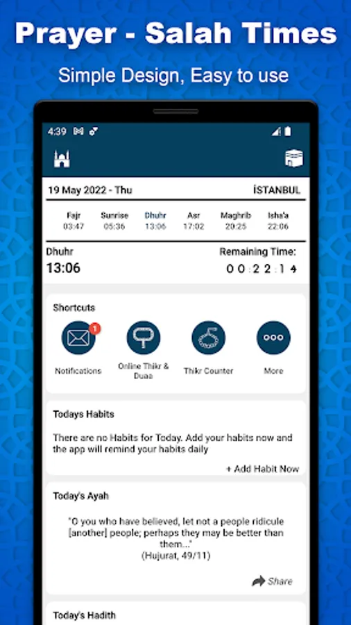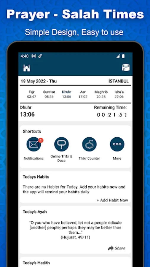 Also with the Thikr Counter you can make your thikrs easily everywhere when you want.