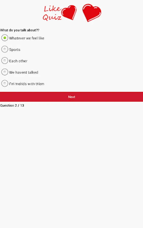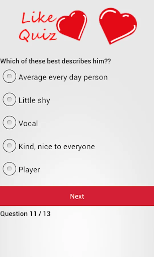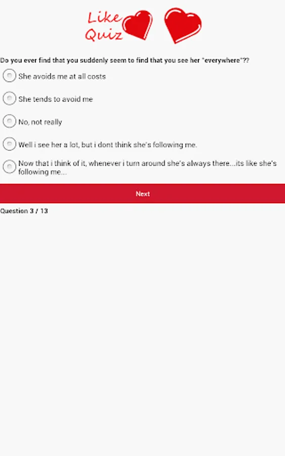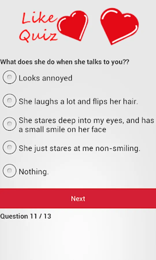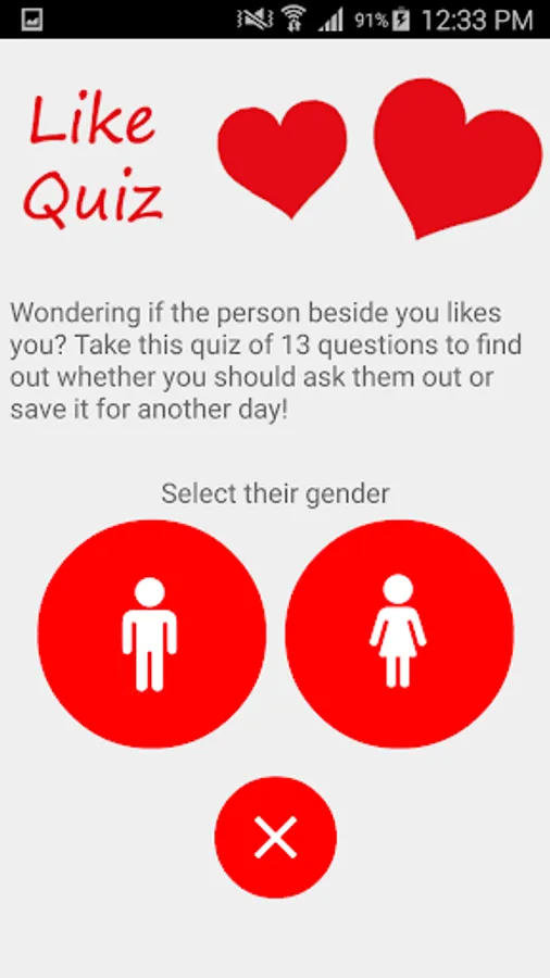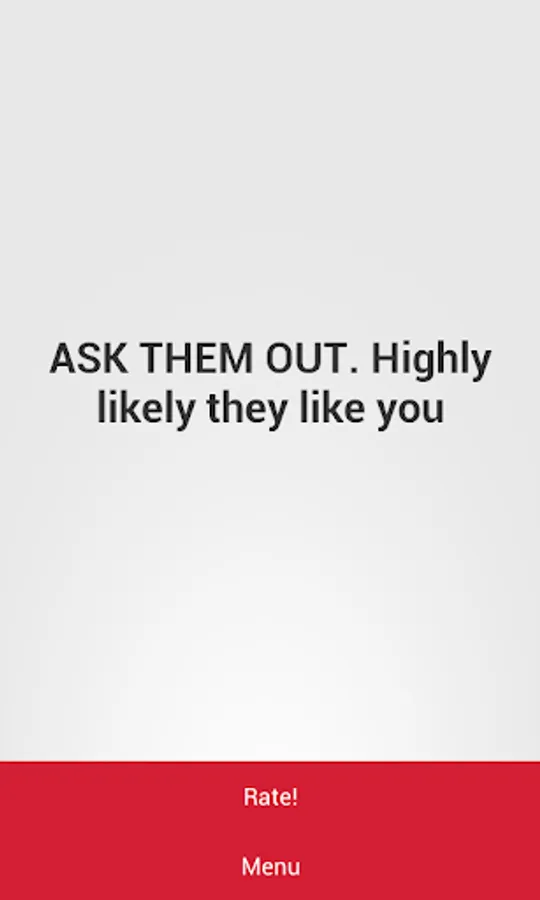 Wonder if that girl or guy next door actually likes you? Take this quiz of 13 questions to find out whether you should ask them out! Whether it's a classroom crush or a love waiting to happen, this app will help you decide!