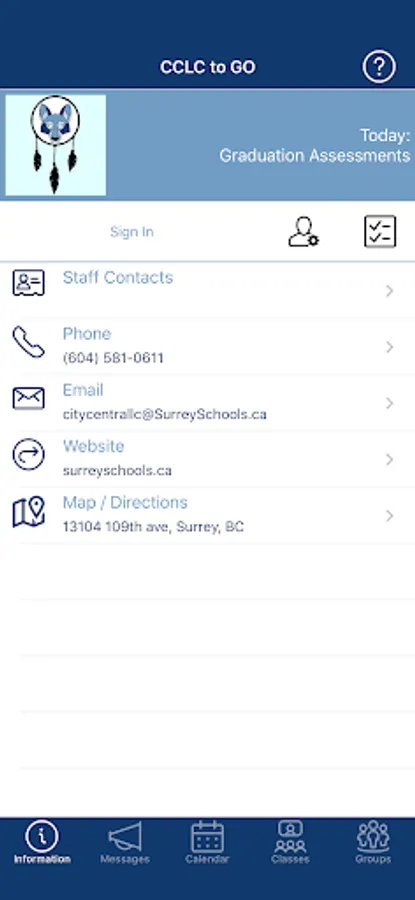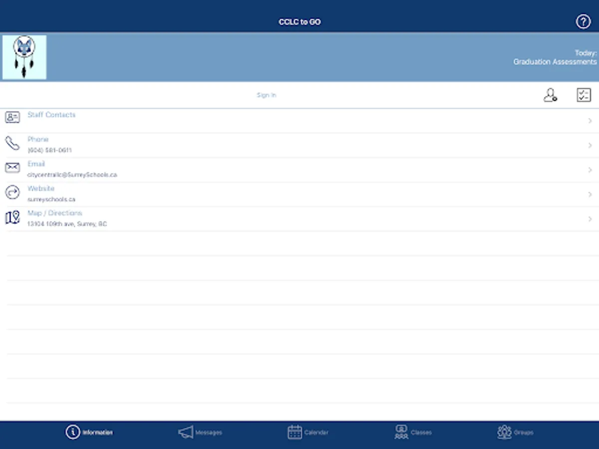 - Conveniently email, phone, or navigate to the school, or reach the website or social media.