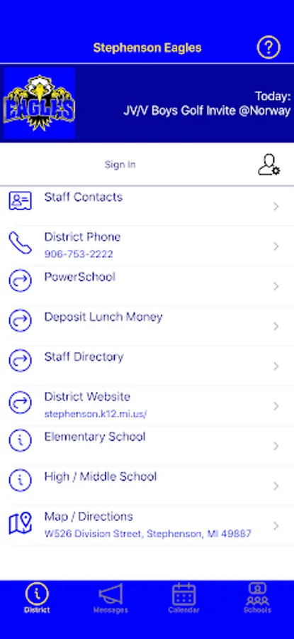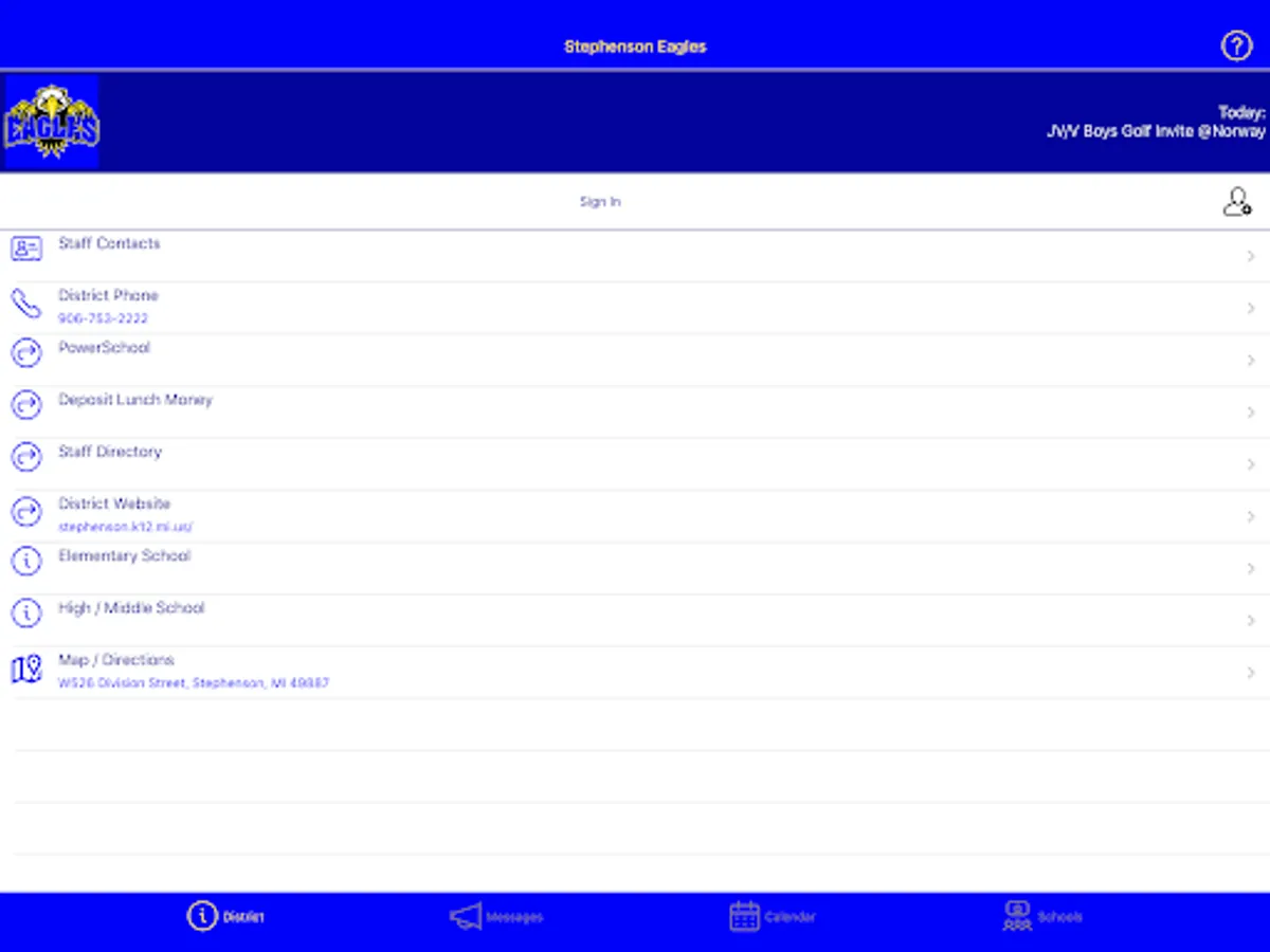 Install the Stephenson Eagles app to keep up-to-date with the latest news, notifications, and schedule updates for the schools your children attend (Stephenson Area Public Schools, Stephenson, MI).