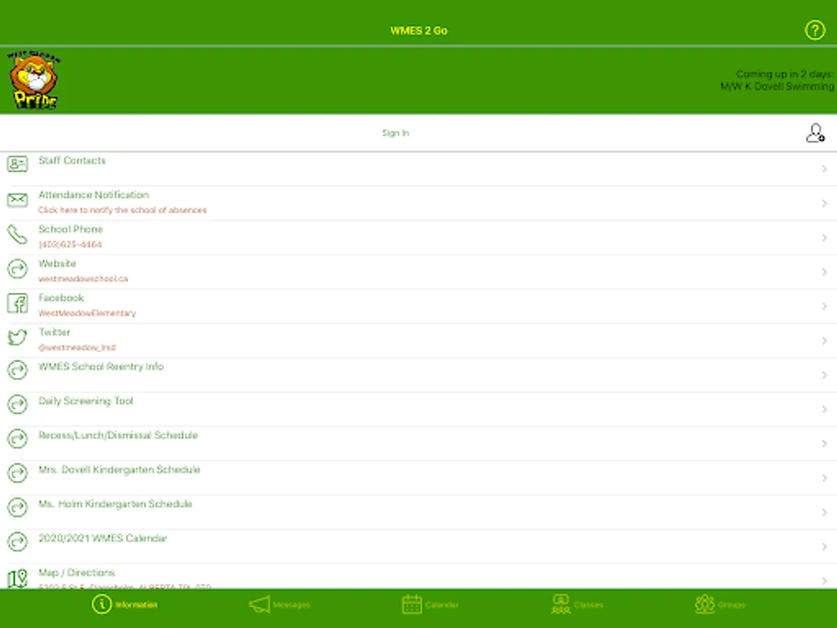 - Conveniently email, phone, or navigate to the school, or reach the website or social media.
