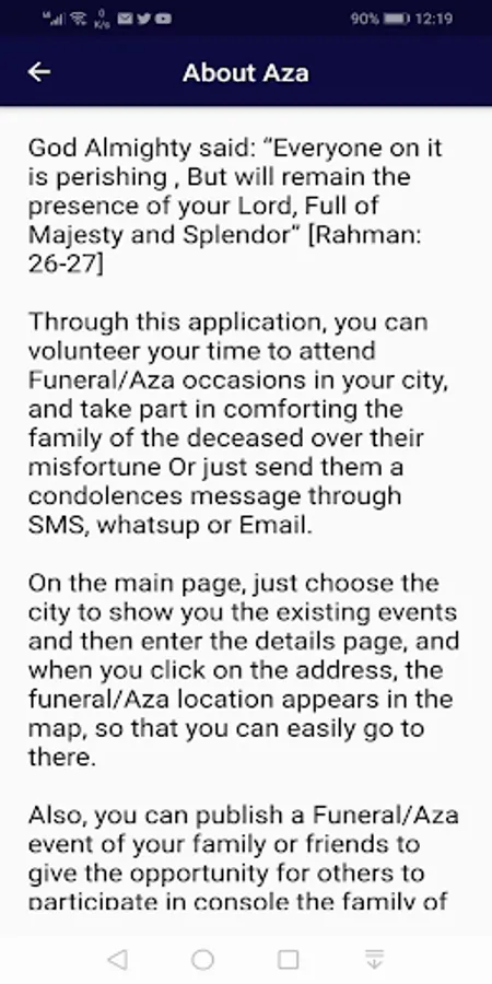 With ( Aza ) App. you can volunteer your time to offer your condolences to others who have death on their family, either through messages, contact or presence.