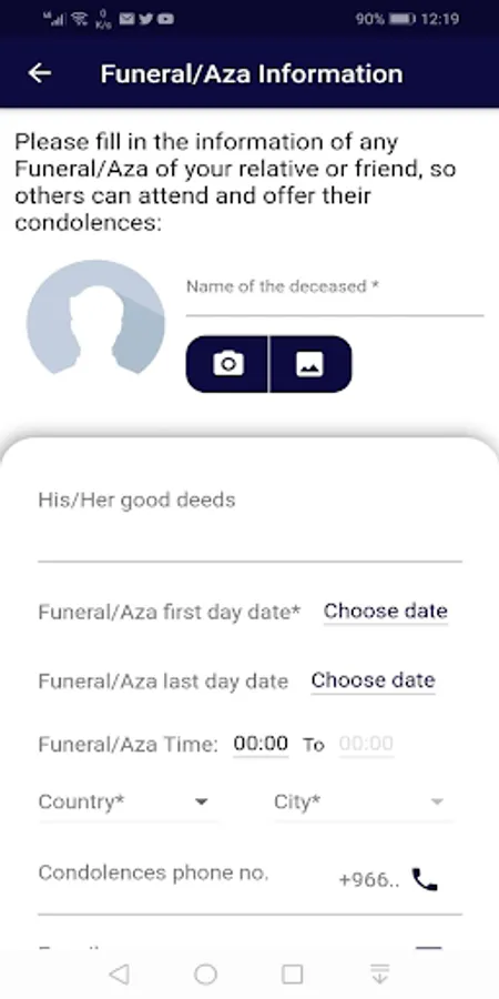 - اختيارات لطريقة تقديم العزاء اما بالحضور او بالتلفون او الرسائل