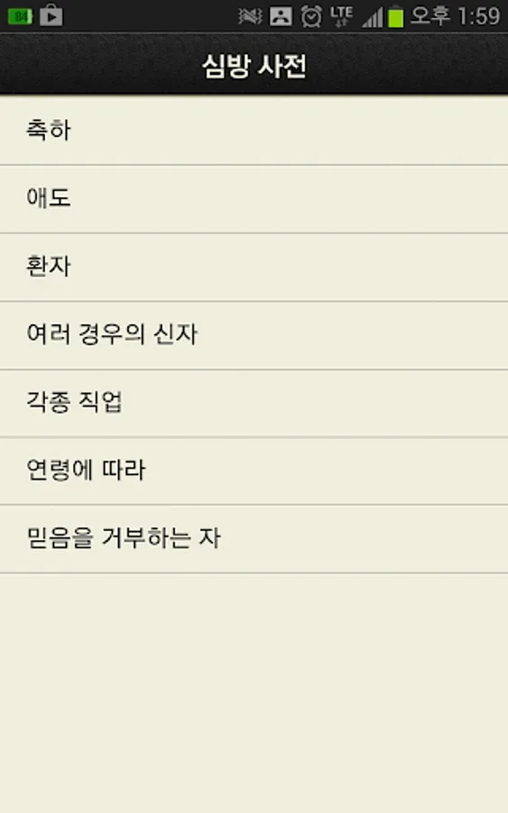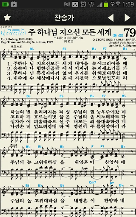 - Search function: Bible texts, hymns (chapter / title / lyrics / unified hymn), advance