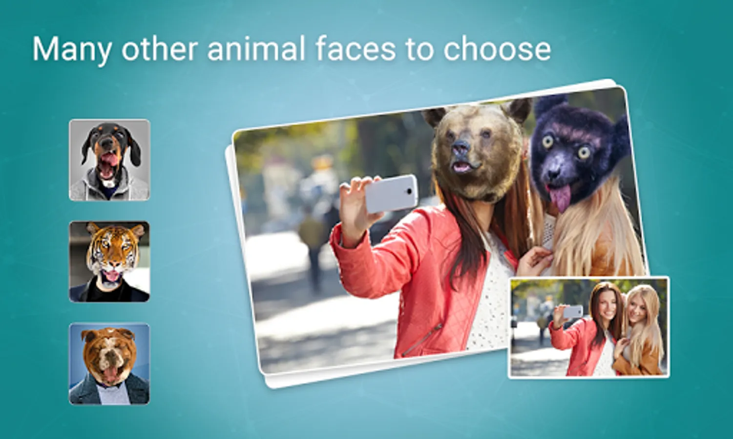 Create a hilarious pictures! Make your playful group pictures with Wild & Pet Animal Faces.