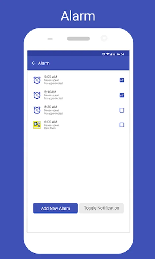 8.Alarm : Best alarm with lot of features like notification bar active, music play, battery check, etc.
