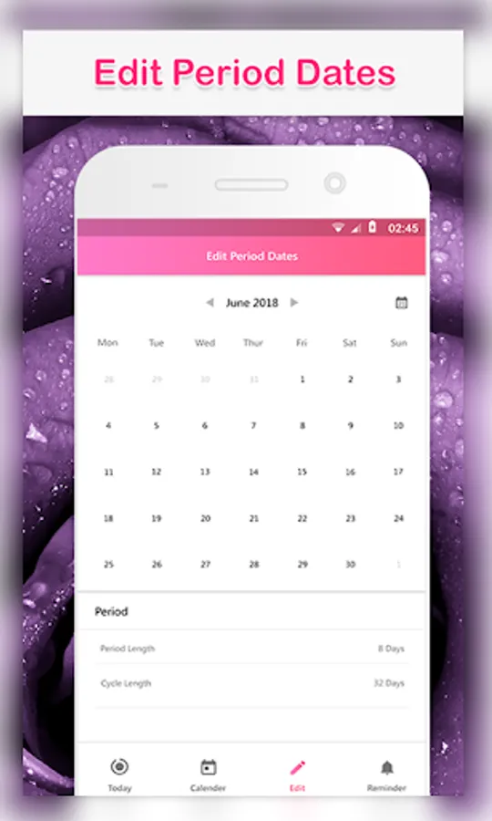 ● Customize your personal period length, cycle length and ovulation for irregular periods