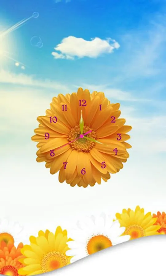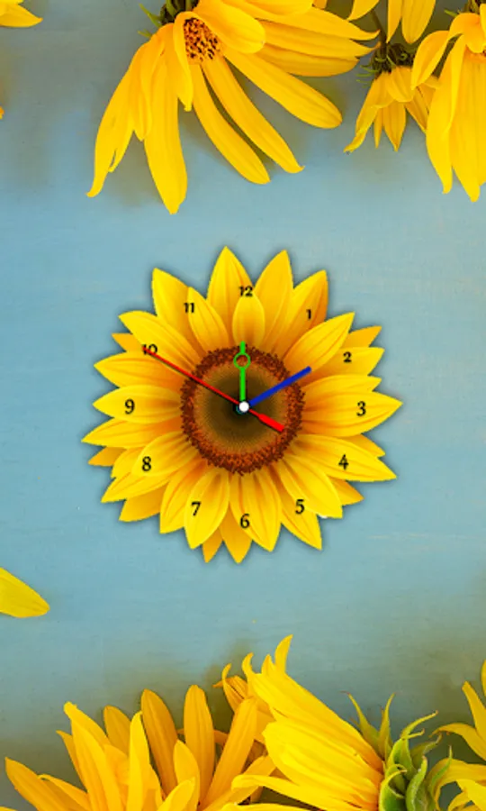 Enjoy the view of nature embedded with sun flowers with clock ticking. This application