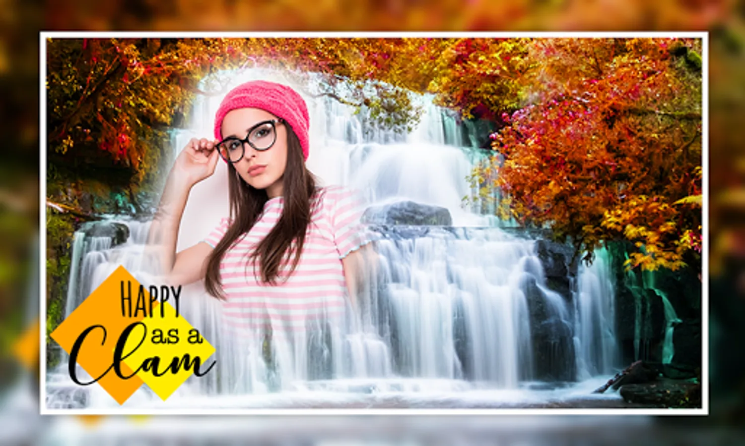 Happiness often begins by a splashing waterfall in nature! Let the soothing sound of the water crashing relax you and allow you to enjoy the beauty of the moment. Bring the energy of water to your favorite photos with this excellent photo editor and add picture frames to commemorate these images. The photo frames are especially great for family photos with your kids. Download this image editor now to try a photo background on your images!