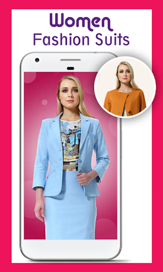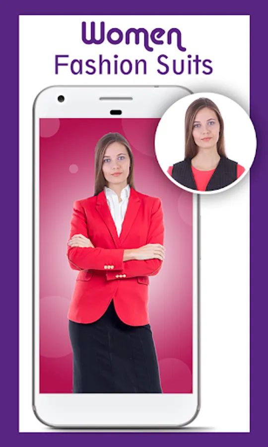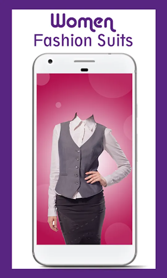 Use this app with your device camera to take the picture of yourself You can even place these Women Fashion Suit on photos within your gallery.