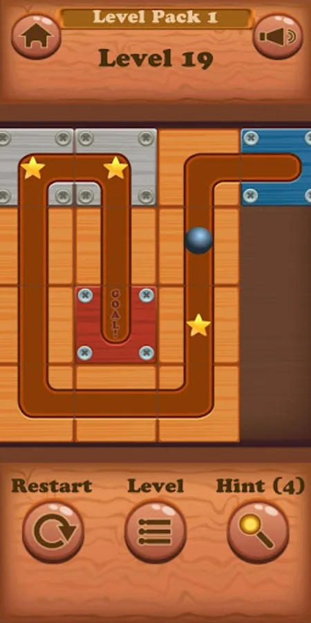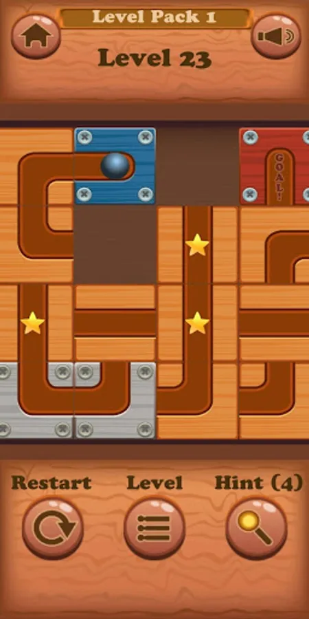 Ball Puzzle is a classic tile puzzle with a modern challenging twist. Move the sliding tiles to unblock a path for the steel ball to roll to the exit. Enjoy the satisfaction of seeing the ball roll smoothly through the connected tiles to the end.