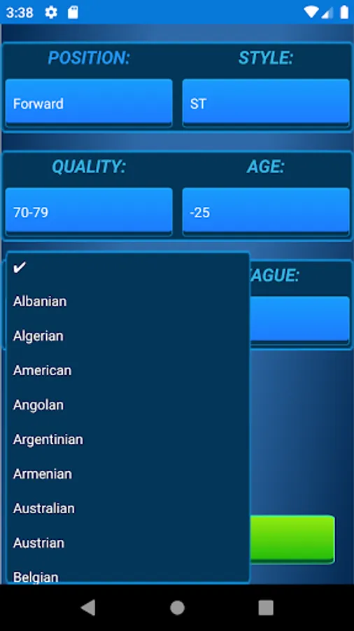 you can search by nationality. As you may know that having a squad with the maximum players with the same nationality, help you win games as it adds + 6 per cent to your win average in each game.
