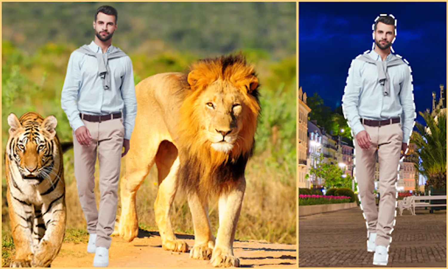 3. Paste your cut photos against wild animal backgrounds.