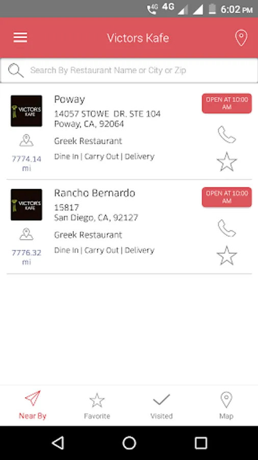 Victors Kafe App can be used by end customers to view and place online orders for Victors Kafe restaurant (http://www.victorskafe.com/)