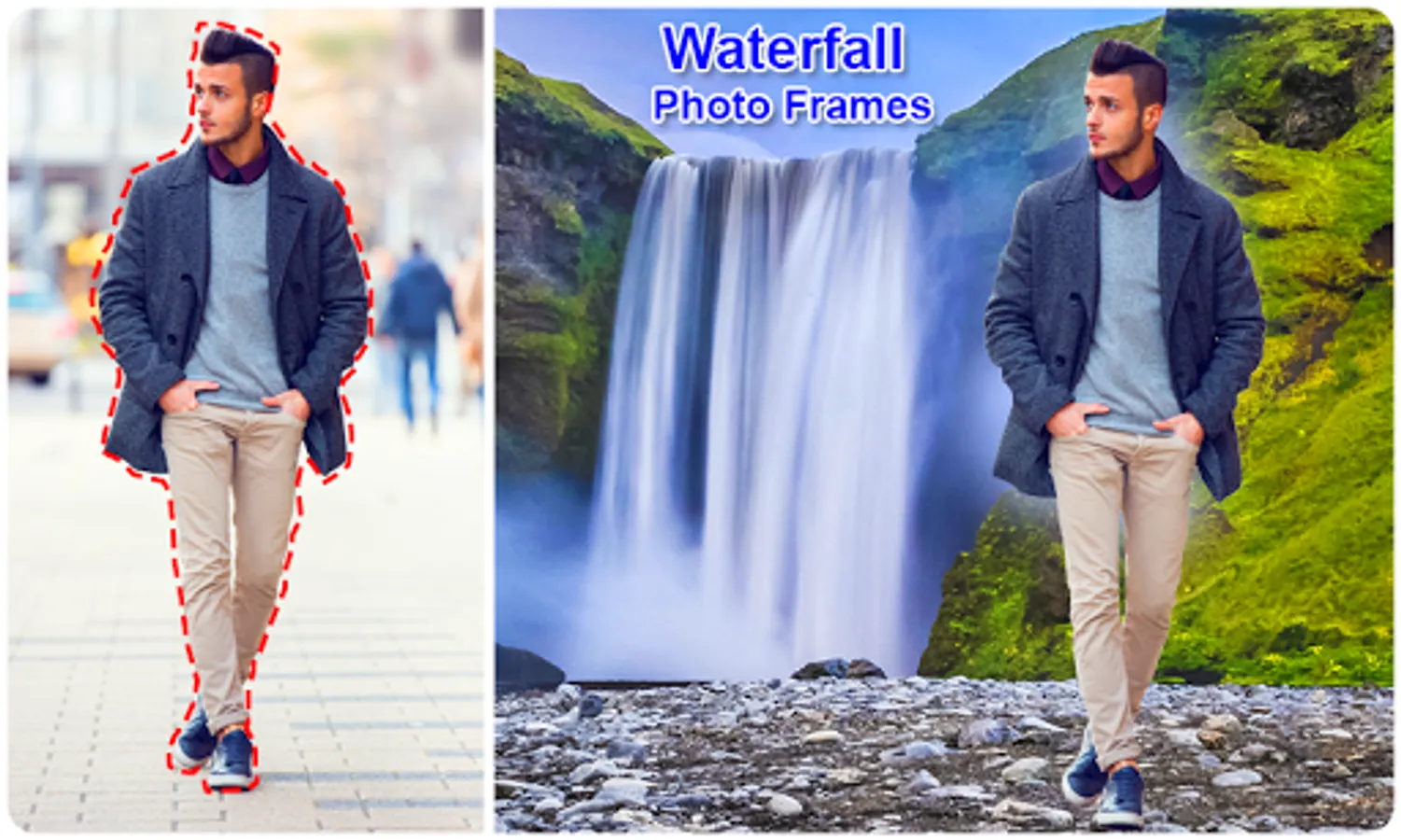 Waterfall photo frames has auto background eraser. It will help you to remove particular color object from the background with single touch.