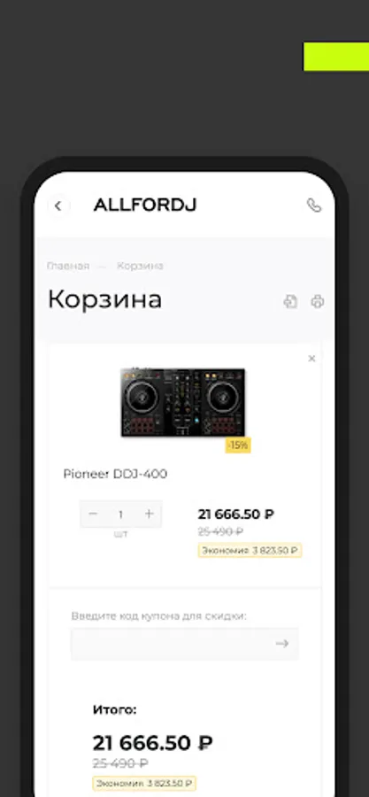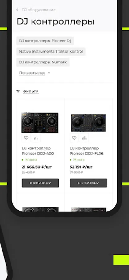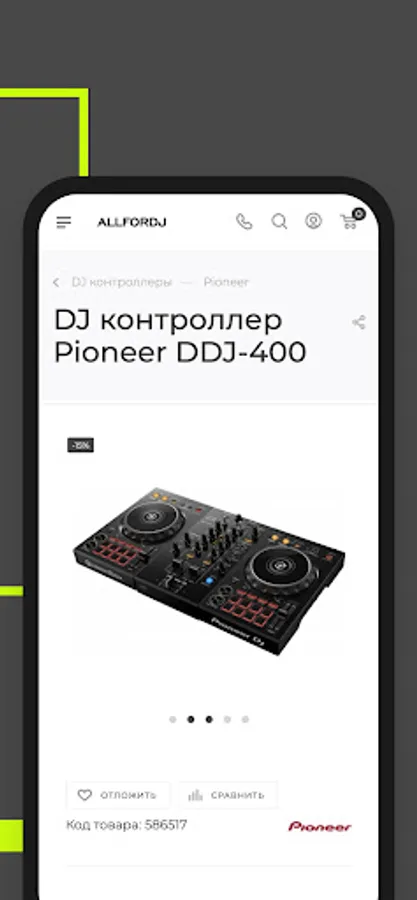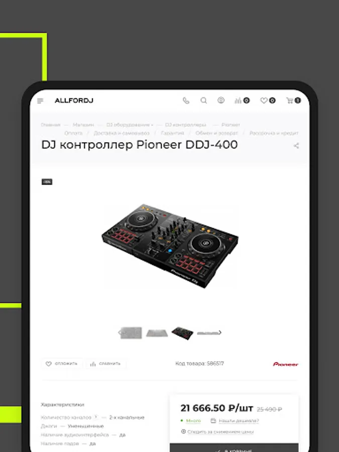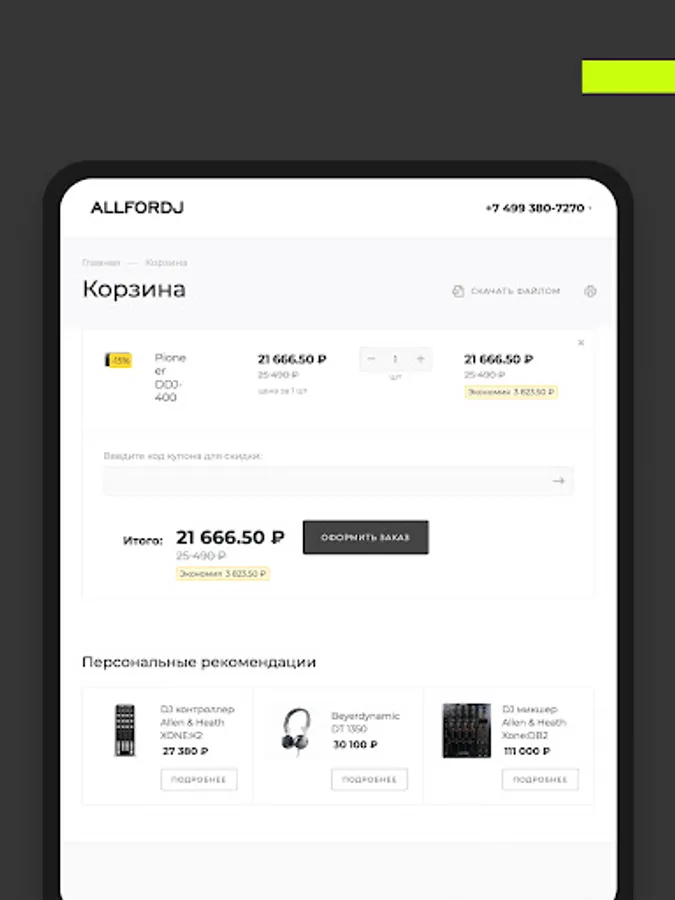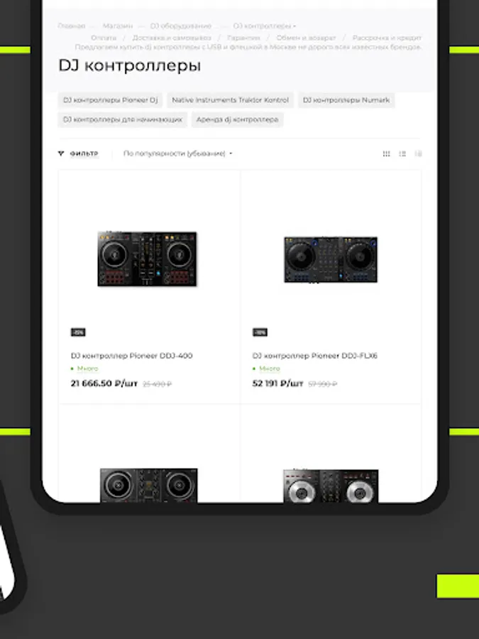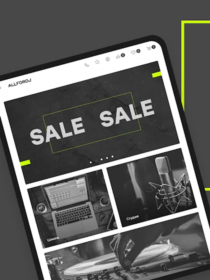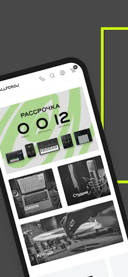 Studio store application for DJs and musicians with equipment delivery in Russia and the CIS.