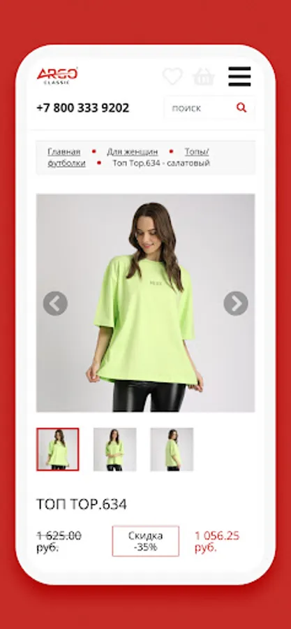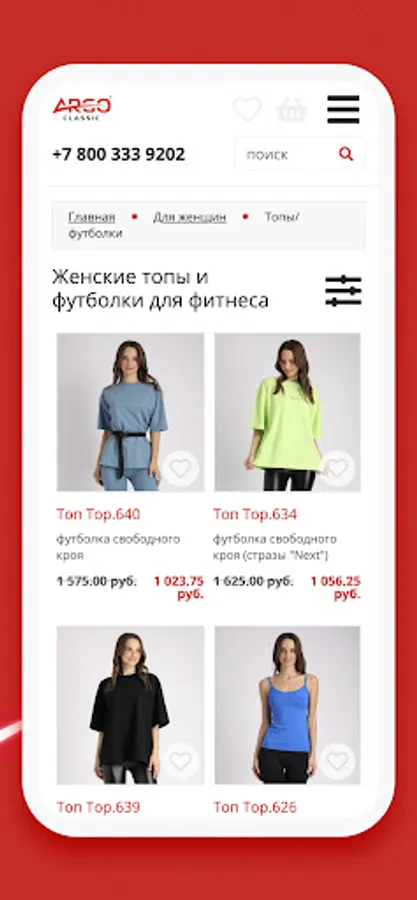 The application is the official retail and wholesale online store of the company "Argo Classic" (LLC "Argo Classic") - a Russian manufacturer of clothing for sports, fitness and outdoor activities.