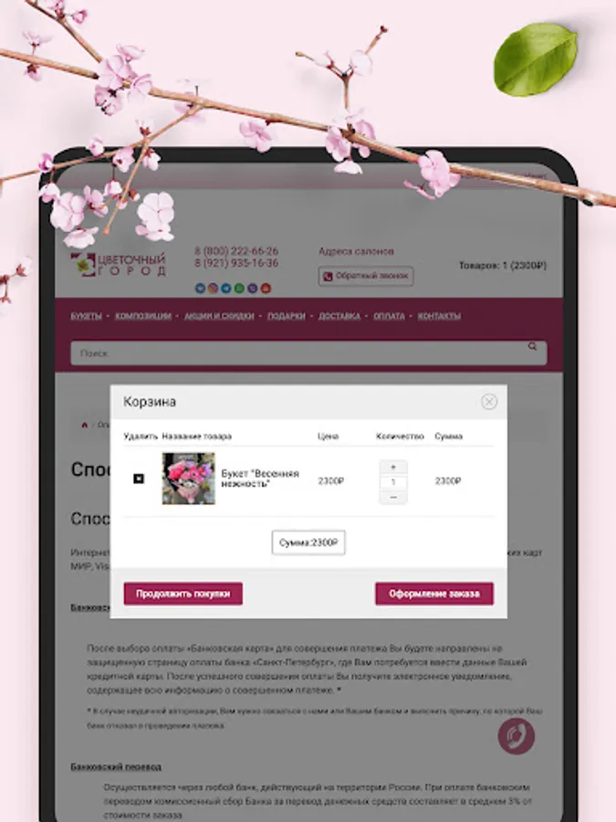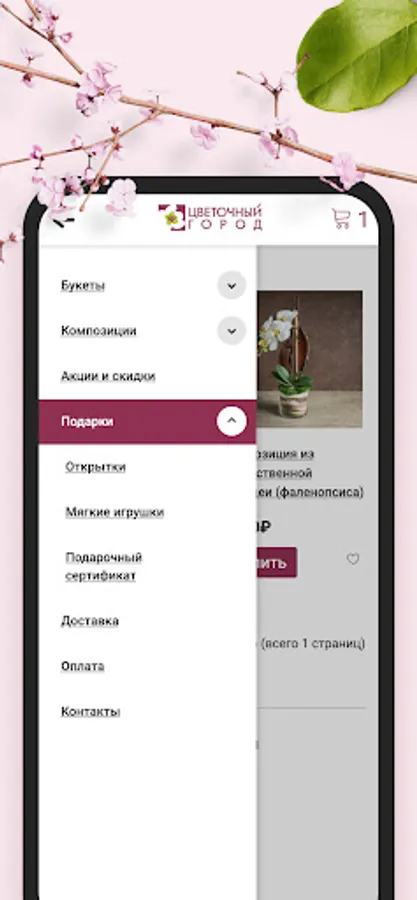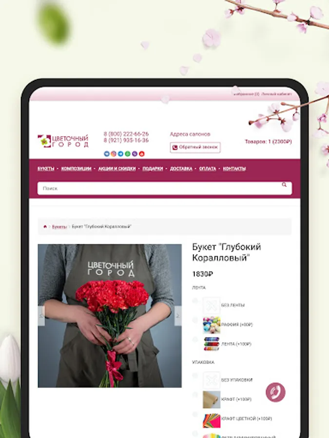 Mobile application for the sale of flowers and bouquets with delivery