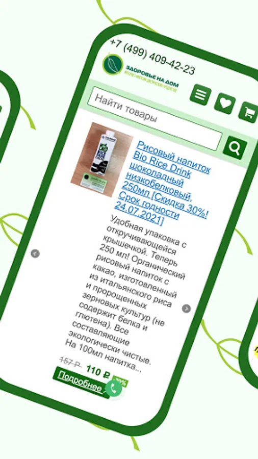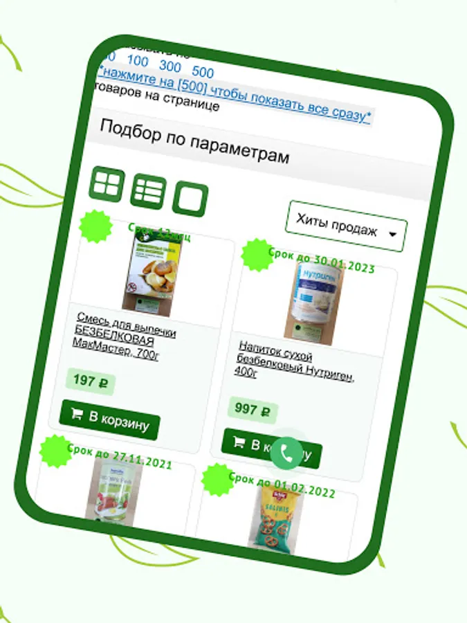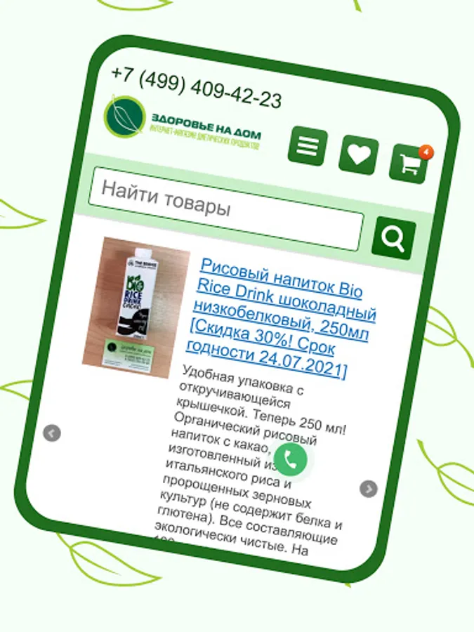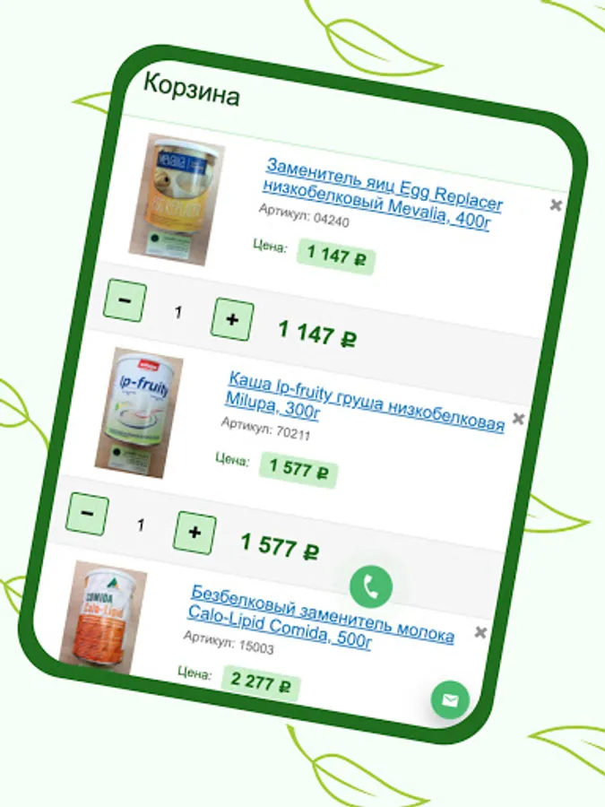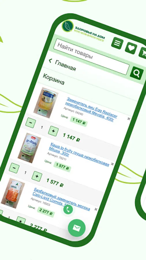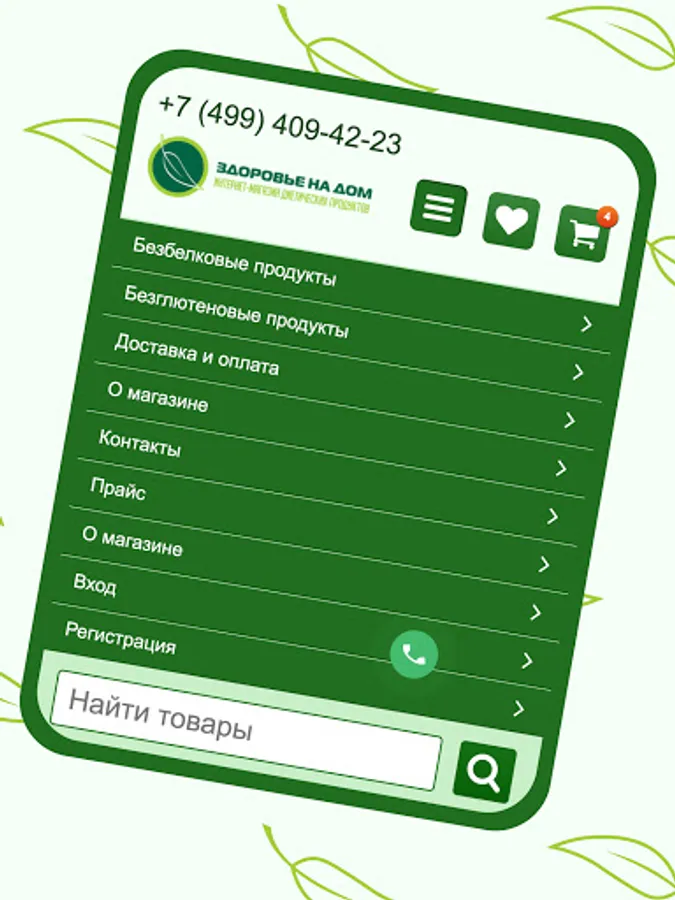 A mobile application for viewing products in the showcase and creating orders in the "Health at Home" online store: dietary (low-protein, protein-free, gluten-free) products of various brands with delivery in Russia and Belarus.