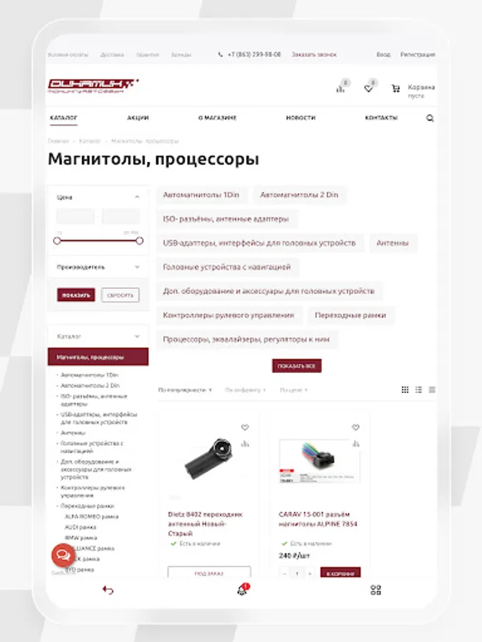 Our mobile application presents not only technical innovations in the car audio market, but also a wide range of additional services. Today you can buy radios, speakers, cables, car accessories and much more.