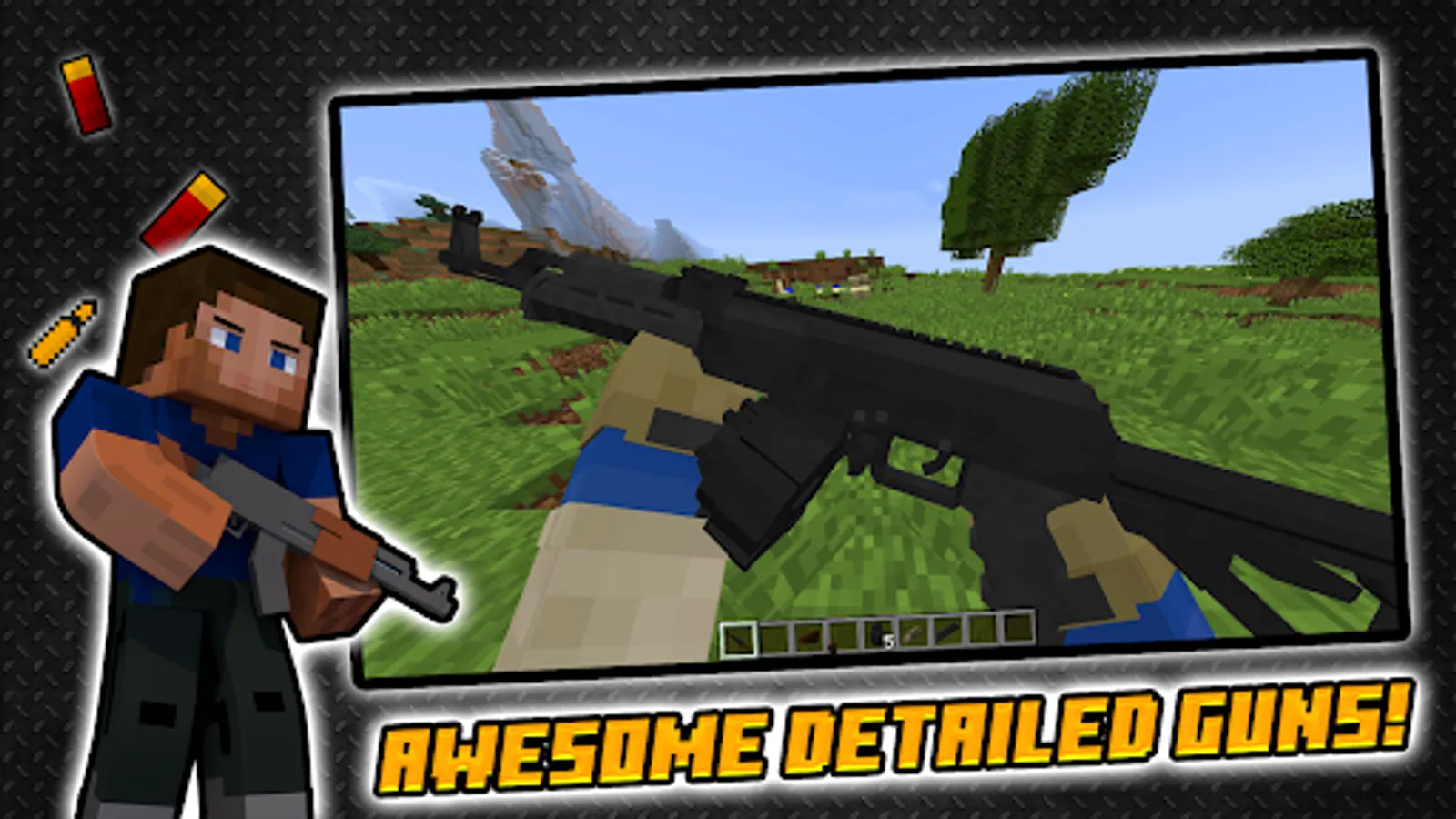 Improve your Minecraft Pocket Edition experience with mods and addons that you want. With ActualGuns 3D for Minecraft PE you can add many new 3D weapons into your Minecraft pocket edition world and make all blocks better. Add Taurus Pistol, M3 Shotgun, P90 SMG, M249, AKM, M4A1, Chain Grenade, famous AWP Sniper and more weapons to your MCPE world!