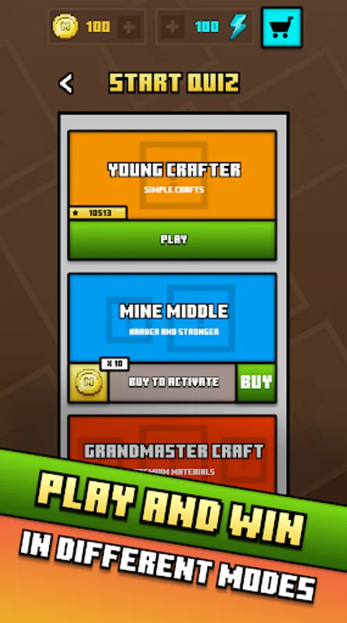 Mine-craft Quiz is designed with an intuitive and user-friendly interface that is easy to navigate, making it suitable for players of all ages. You can play the quiz alone or challenge friends to see who can get the highest score.