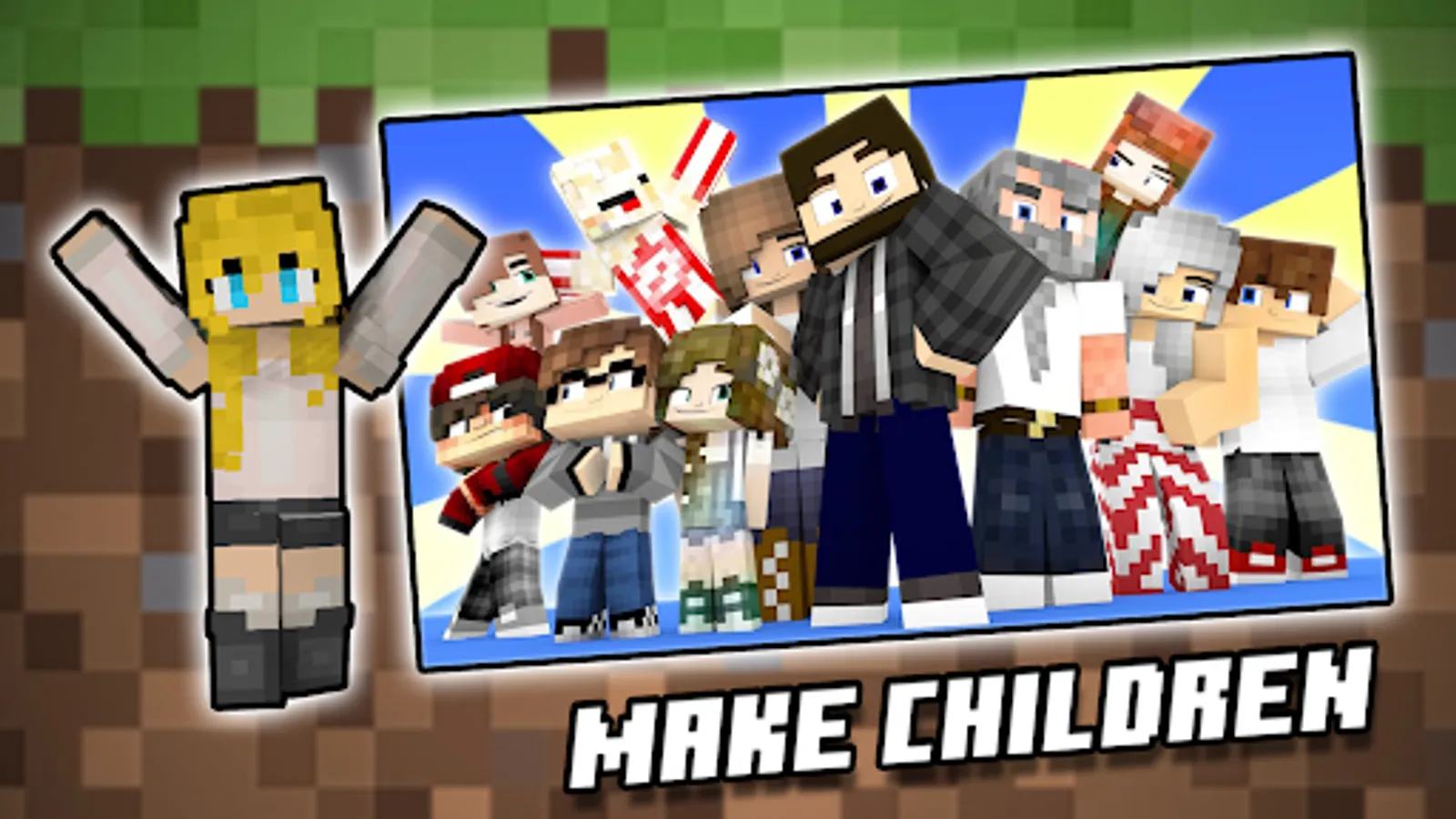 Improve your Minecraft Pocket Edition experience with mods and addons that you want. With Happy Family for Minecraft PE you can add a whole family with the ability to marry, work and have children into your Minecraft pocket edition world and make all blocks better.