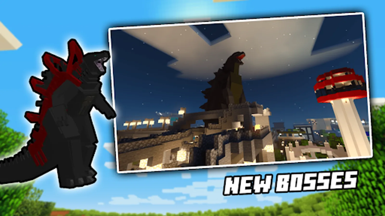 Godzilla vs King Kong mod will add many monsters to your MCPE world, such as: