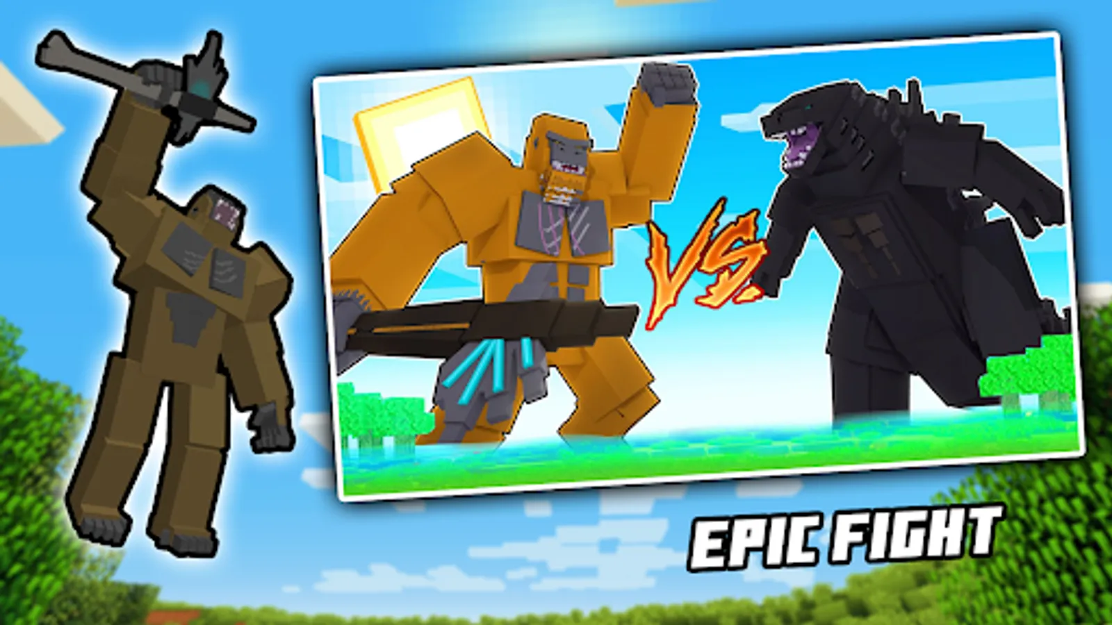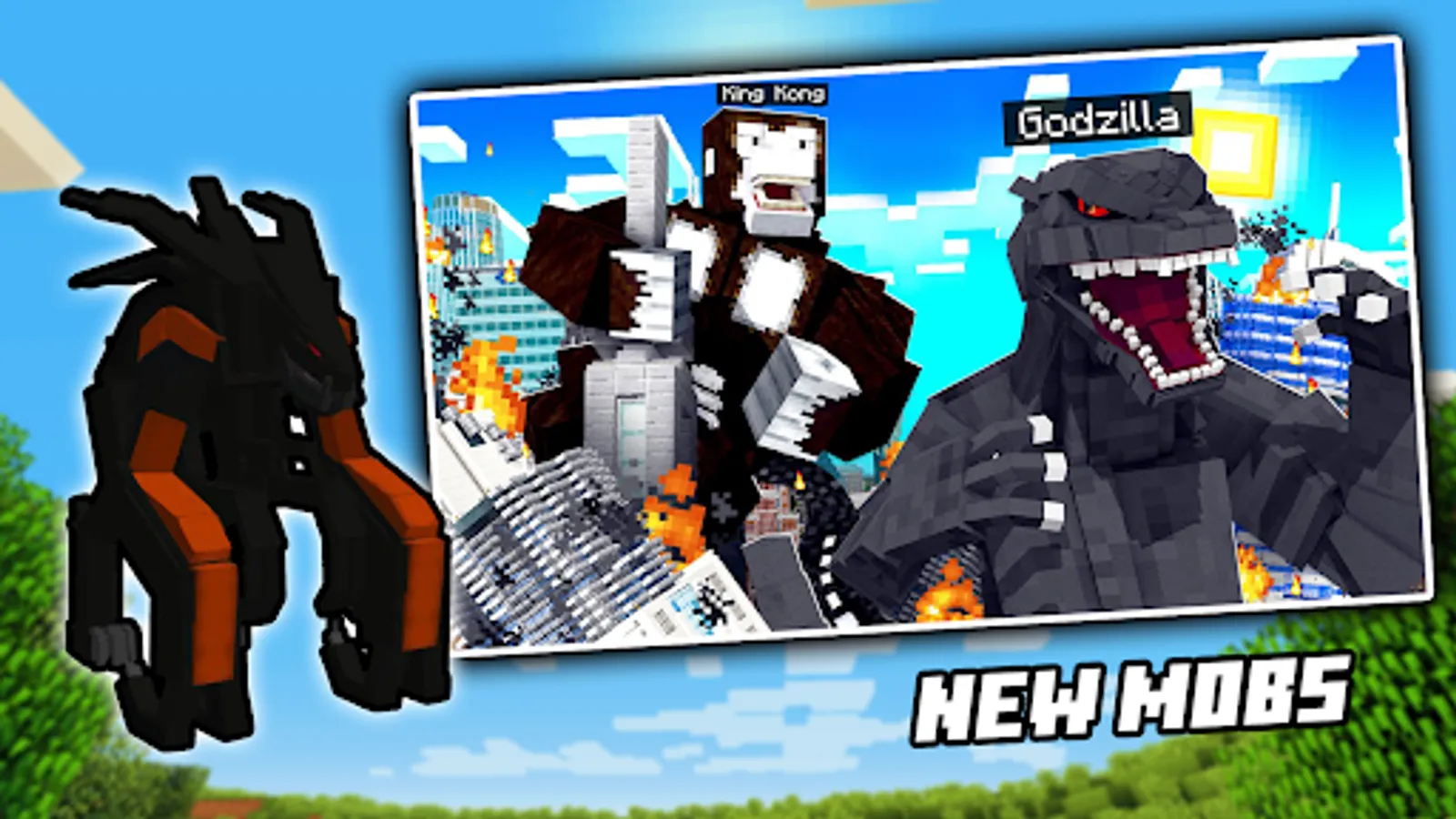 Improve your Minecraft Pocket Edition experience with mods and addons that you want. With Godzilla Vs Kong Mod for MCPE you can add over 30 powerful mobs from Godzilla vs King Kong world into your Minecraft pocket edition world and make all blocks better.