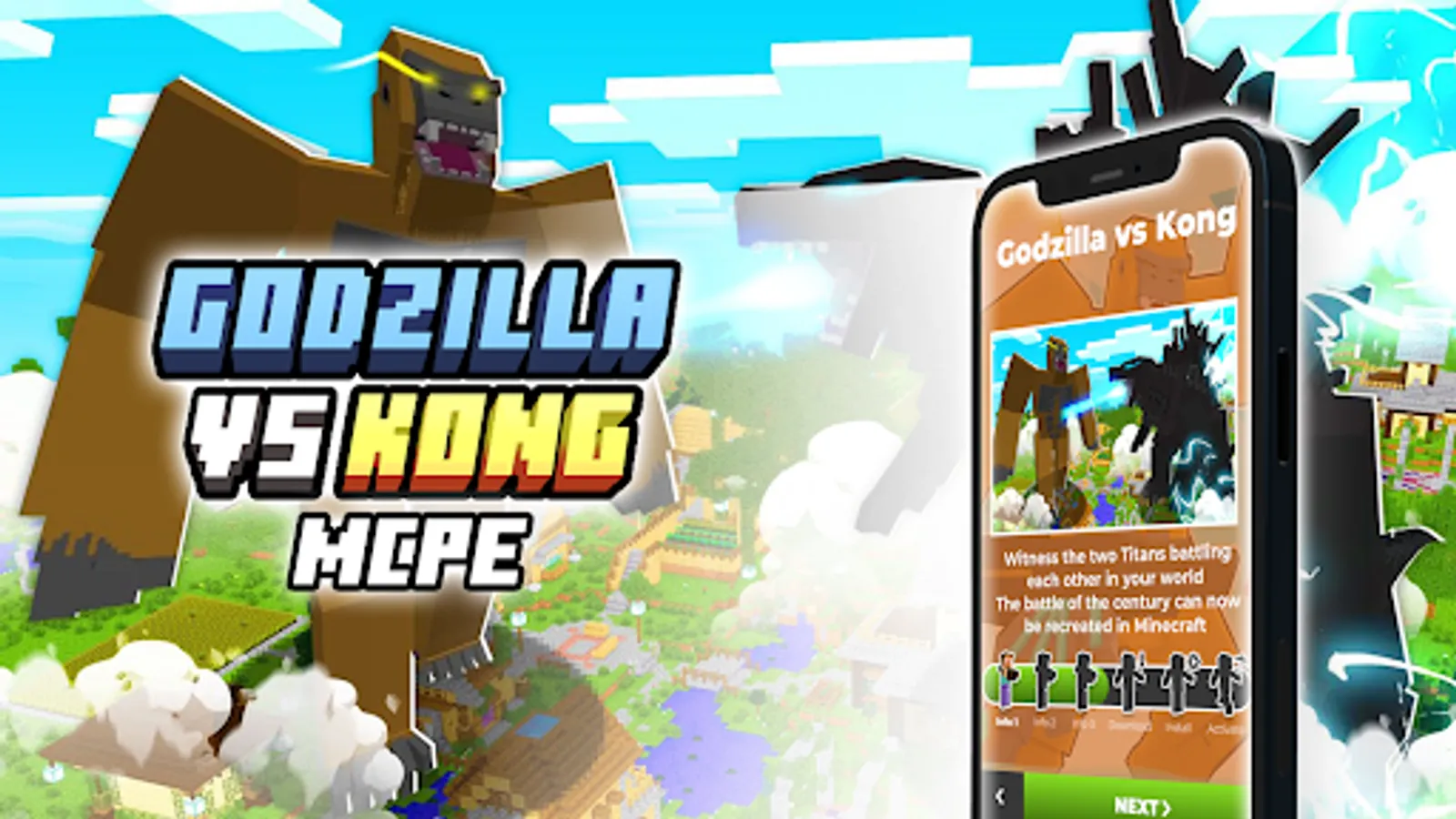 Download Godzilla Vs Kong Mod for MCPE right now, and enjoy all new addons to your Minecraft Pocket Edition blocks world!