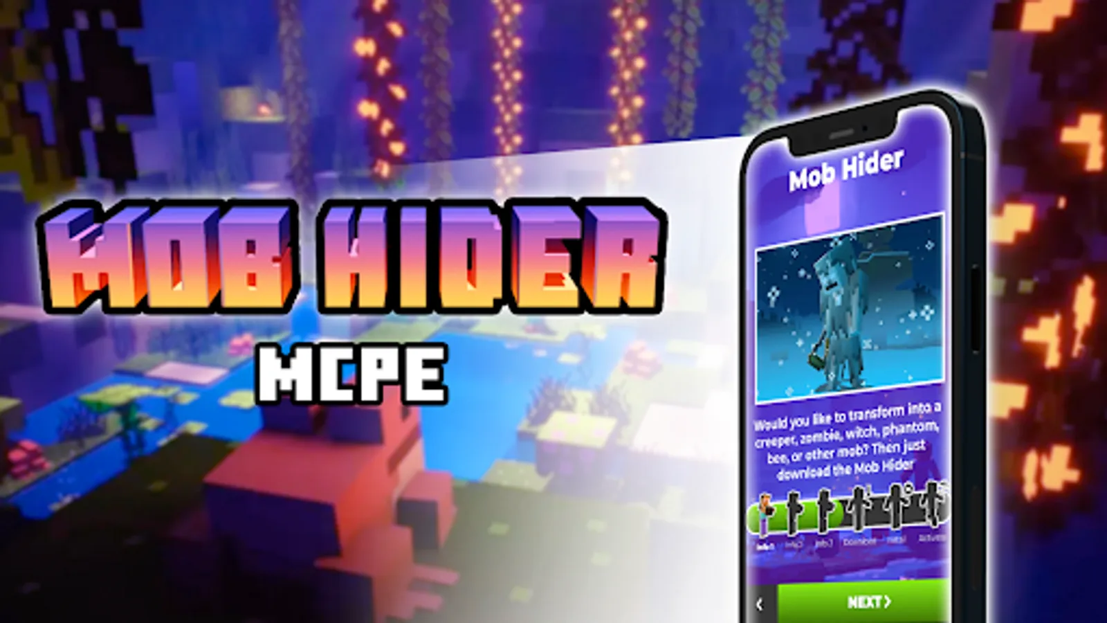 Mob Hider for Minecraft PE is a free utility launcher for MC PE where you can play as more than 76 mobs. Download and automatically install into the game through our launcher.