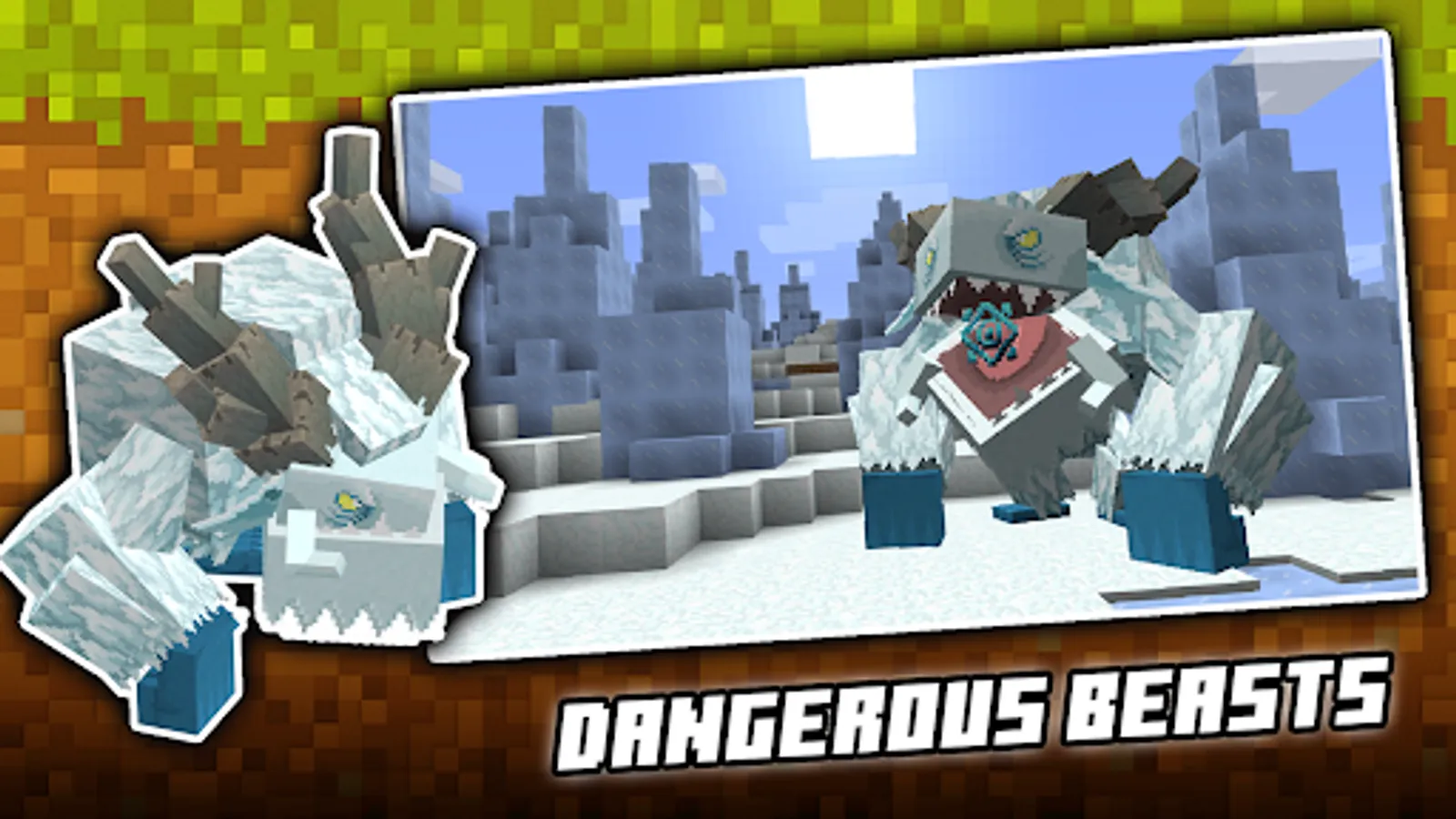 Improve your Minecraft Pocket Edition experience with mods and addons that you want. With Movzies mobs for Minecraft PE you can add many fictional creatures, like frostmaw, Ferrous Wroughtnaut, Grottol, Foliaath, Naga, Barako The Sun Chief, plant creatures and many more, into your Minecraft pocket edition world and make all blocks better.