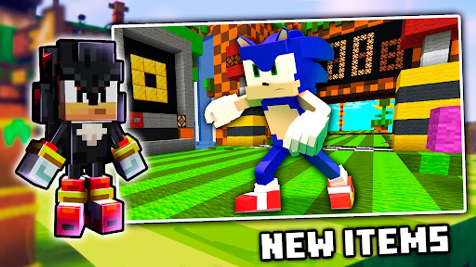 Improve your Minecraft Pocket Edition experience with mods and addons that you want. With Sonic for Minecraft PE you can add a mixpack with characters, map, mode, textures of a popular game - Sonic the Hedgehog into your Minecraft pocket edition world and make all blocks better.
