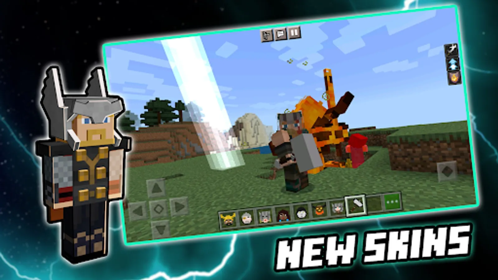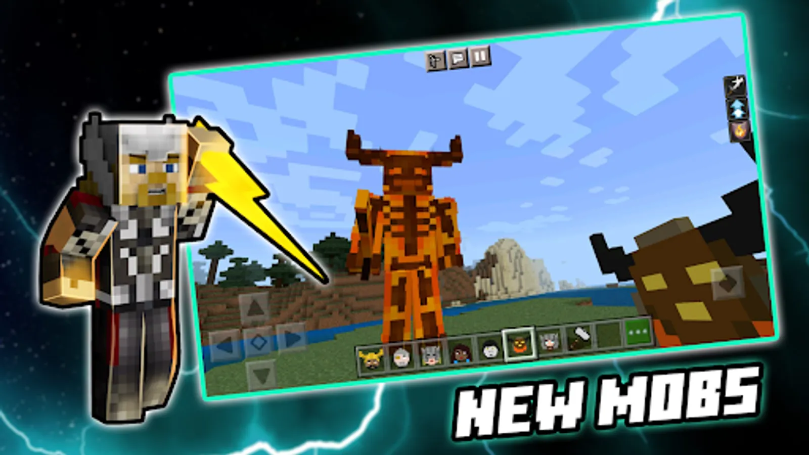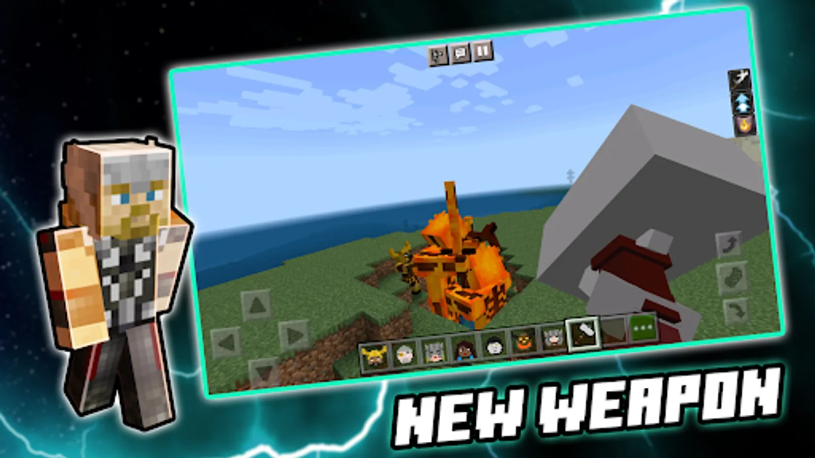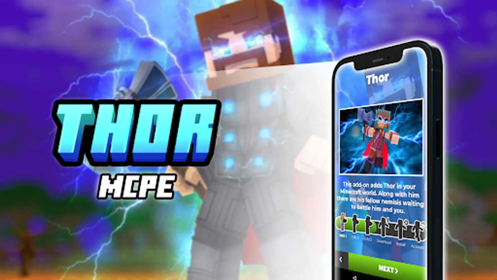 Thor - God of Thunder and Lightning now in Minecraft PE! You can start epic fights with lightnings and monsters.