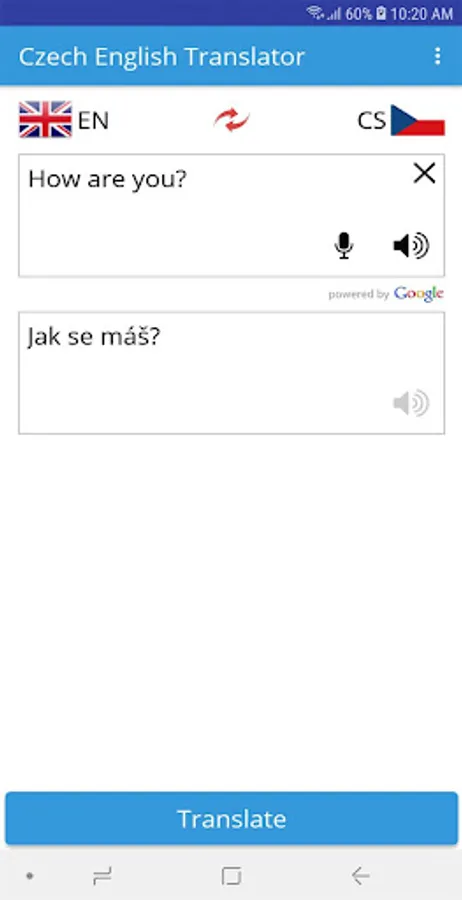 This Czech English Translator application is an useful app that will help you to translate word and text as well as Voice from Czech to English and vice versa.