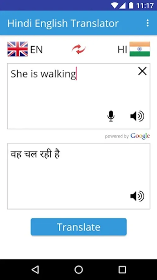 This Hindi to English Translator application is an useful app that will help you to translate word and text as well as Voice from Hindi to English and vice versa.