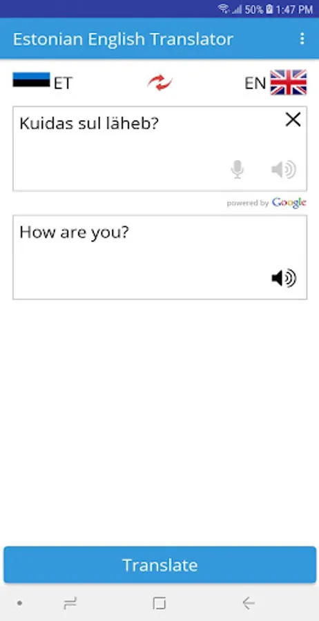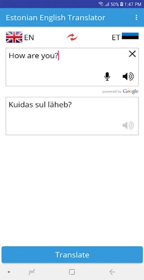 This Estonian English Translator application is an useful app that will help you to translate word and text as well as Voice from Estonian to English and vice versa.