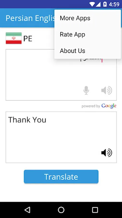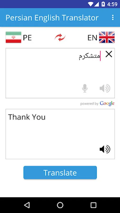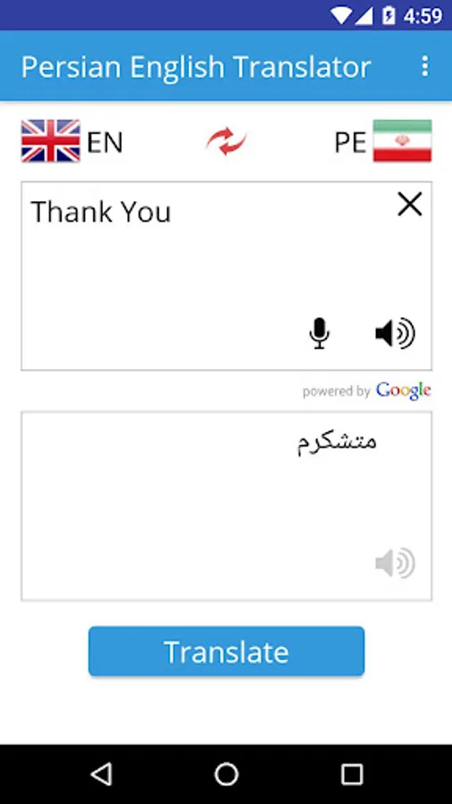 This Persian to English Translator application is an useful app that will help you to translate word and text as well as Voice from Persian to English and vice versa.