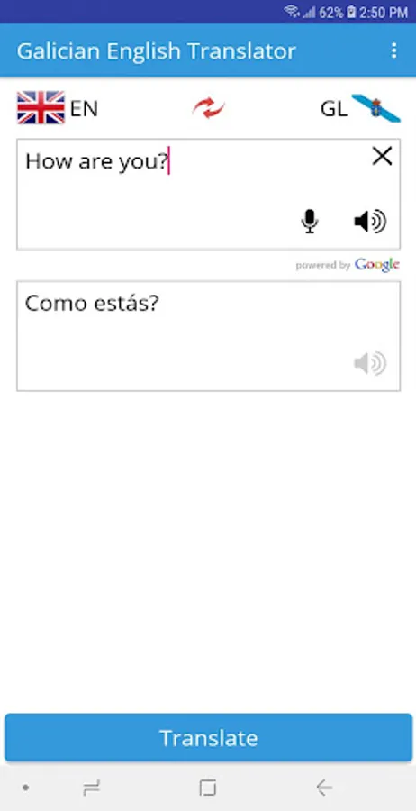 This Galician English Translator application is an useful app that will help you to translate word and text as well as Voice from Galician to English and vice versa.