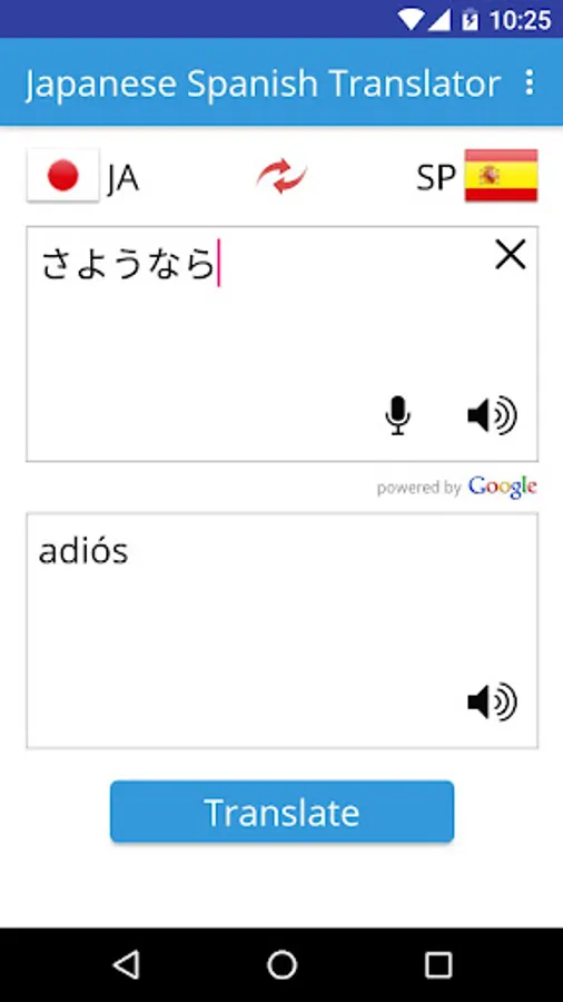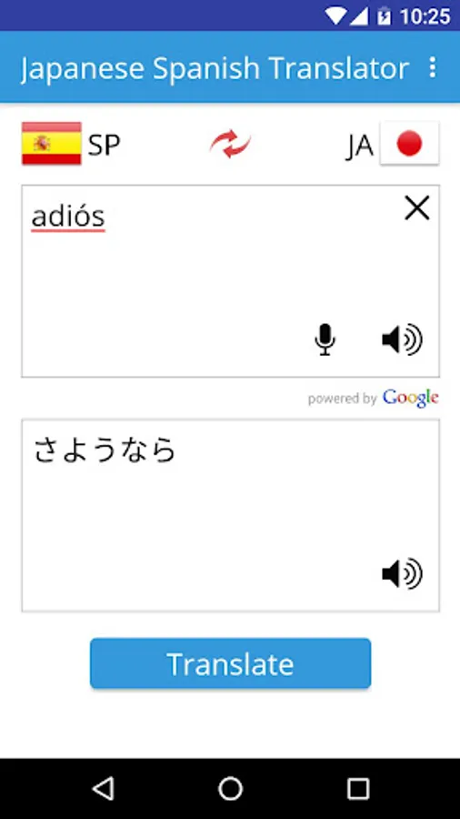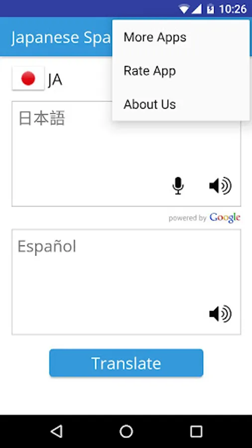 This Japanese Spanish Translator application is an useful app that will help you to translate word and text as well as Voice from Japanese to Spanish and vice versa.