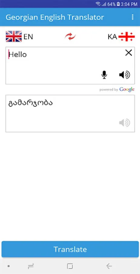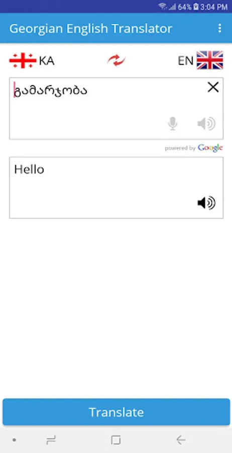 This Georgian English Translator application is an useful app that will help you to translate word and text as well as Voice from Georgian to English and vice versa.