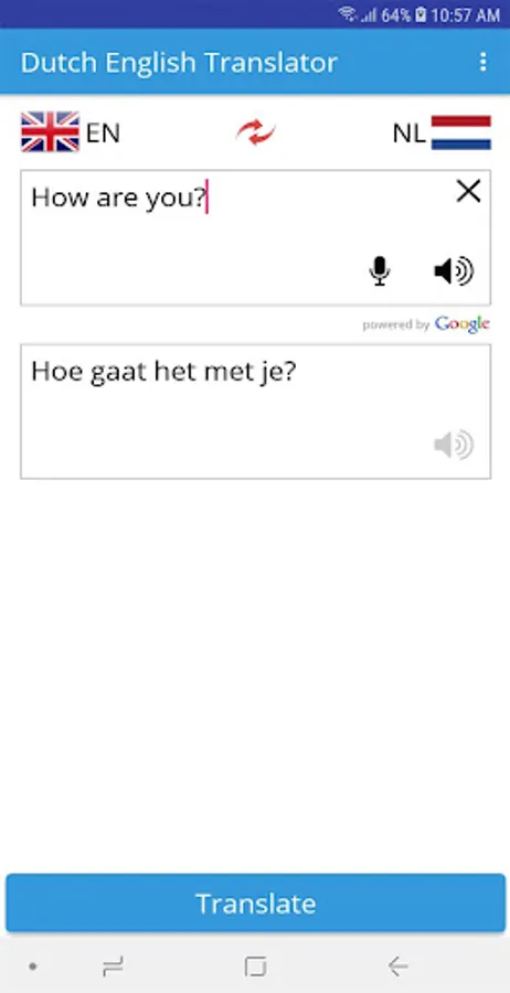This Dutch English Translator application is an useful app that will help you to translate word and text as well as Voice from Dutch to English and vice versa.