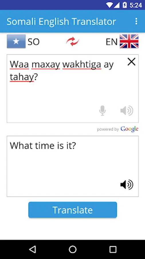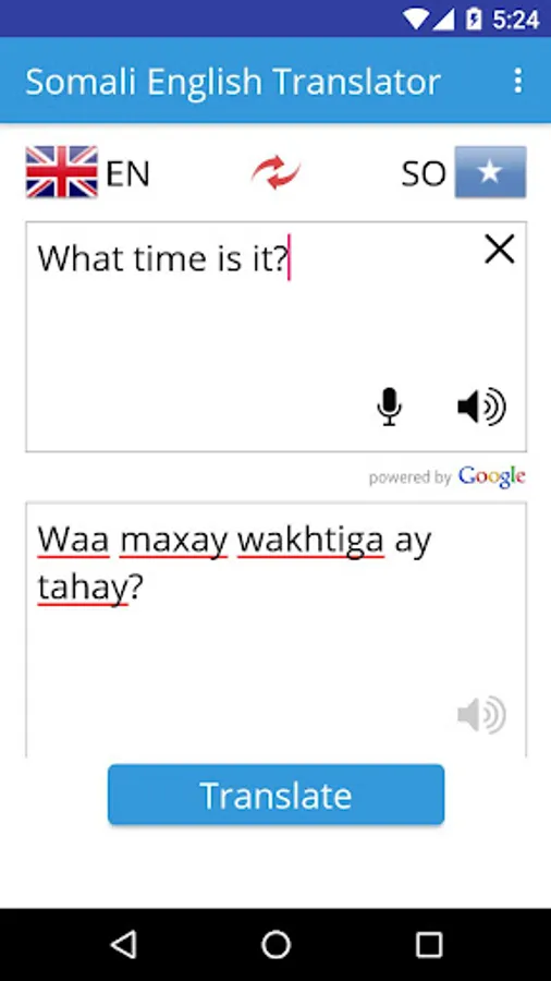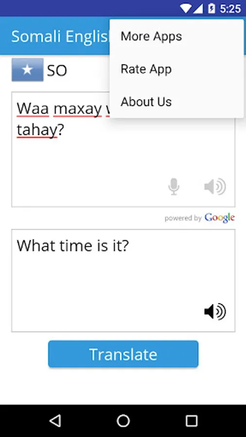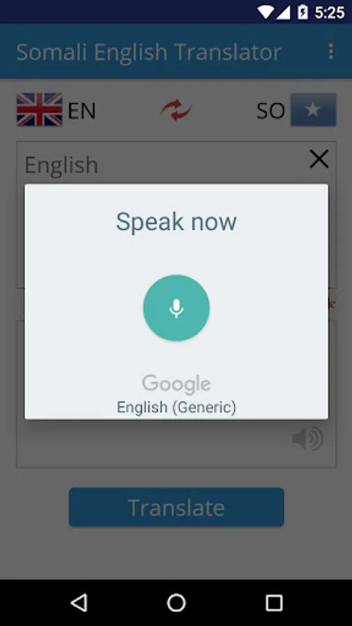 This Somali to English Translator application is an useful app that will help you to translate word and text as well as Voice from Somali to English and vice versa.