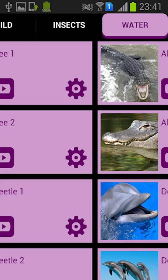 SWIPE or SELECT TAB to switch CATEGORIES of our favourite animals.